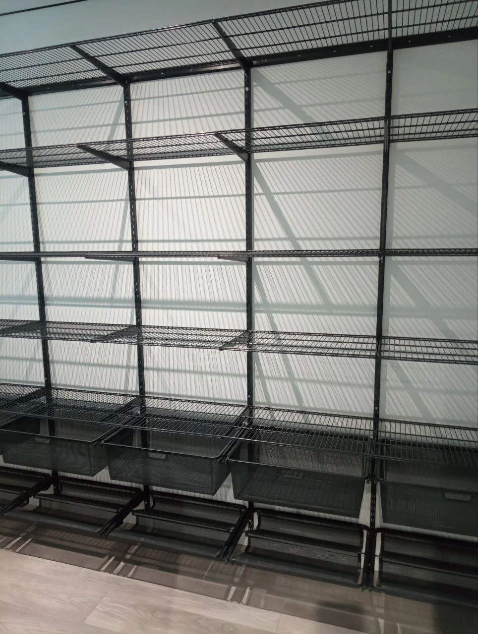 В комплект входят несущие рельсы и навесные направляющие, полки, штанги, аксессуары, крепежные элементы. Можно докупить множество дополнительных компонентов для гардеробной системы.