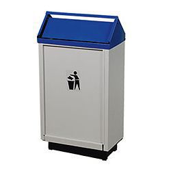 Цвет урны: корпус серый, крышка синяя, основание черное.