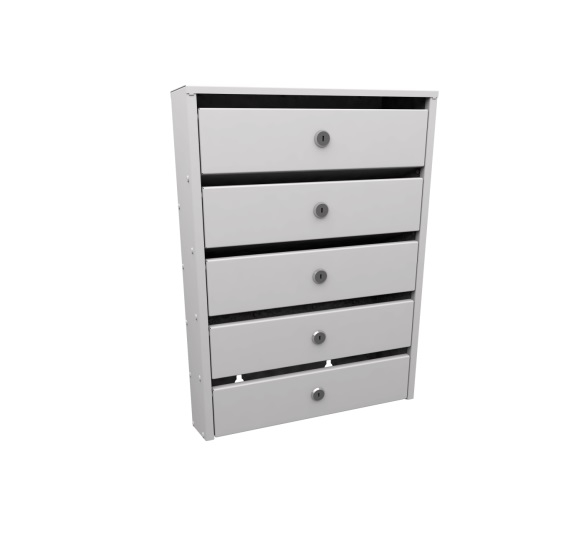 Узкие 5-ти секционные почтовые ящики для подъездов многоквартирных домов серии «Сигма» с задней стенкой. Корреспонденция располагается в секции под углом 25 градусов.