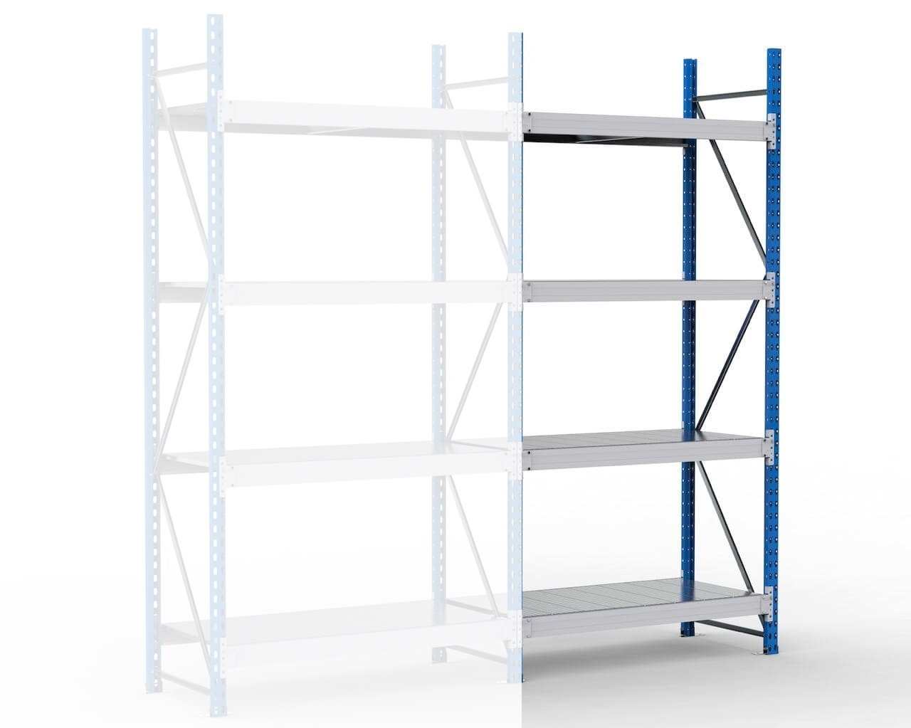 • Дополнительная секция присоединяется к раме основного стеллажа. Нагрузочные характеристики при этом сохраняются.
