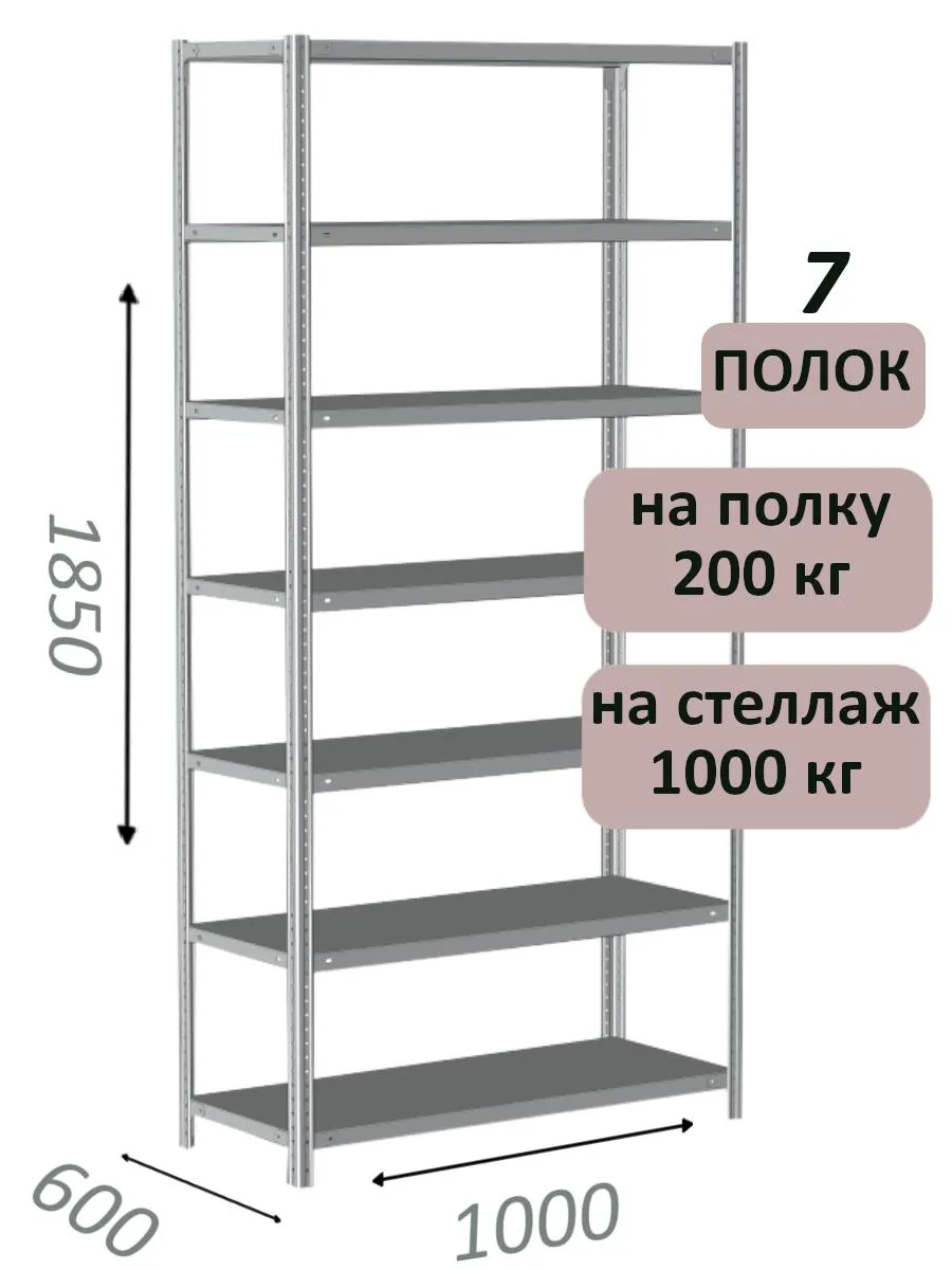 Стеллаж MS Hard 185х100х60, 7 полок
